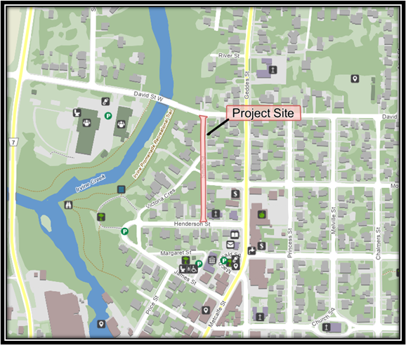 The Township has planned for the reconstruction of Smith Street from David Street W to Henderson Street. This project has several aspects driving its replacement, including replacement of the watermain that has reached the end of its service life, upgrading the road to an urban cross-section with curb and cutter, and installing a storm sewer system to provide improved storm drainage. Smith Street will also have a sidewalk installed on the west side to make a connection from David Street W to Victoria Crescent. This project also includes a realignment of the intersection at Victoria Crescent and Smith Street.