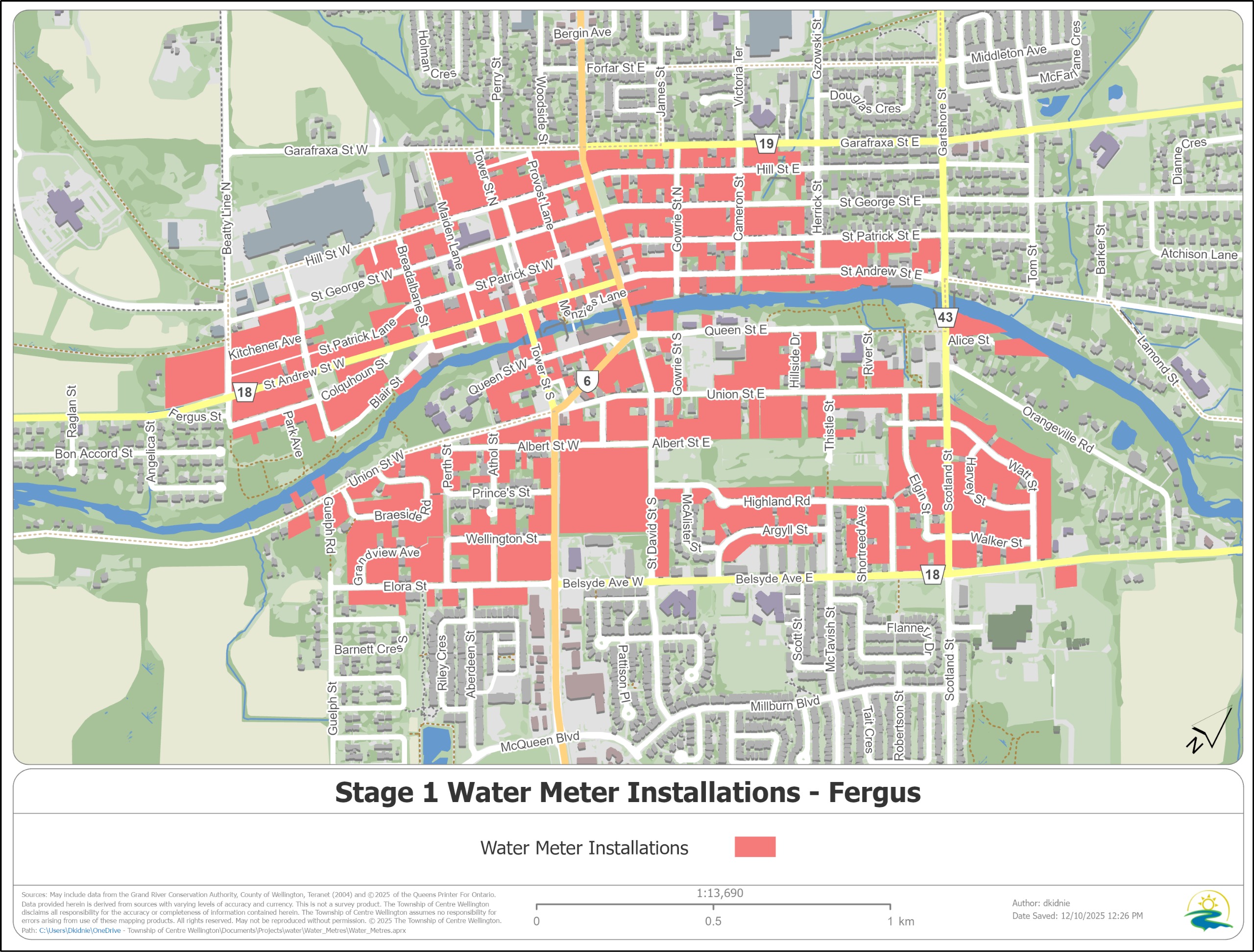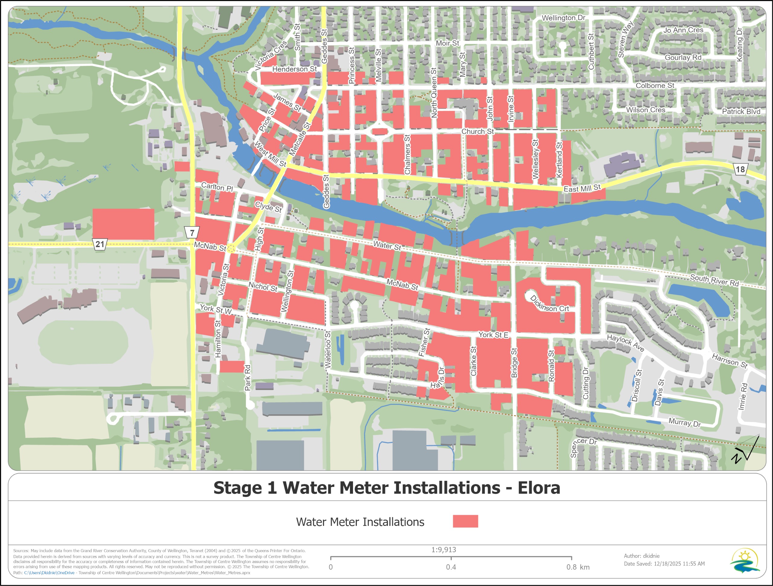 Properties within stage one of the water meter installation program are highlighted in the maps below. These properties have received project information and detailed information on how to book your appointment in the mail. Neptune Technicians are in your area to complete appointments and may be going door to door with information on the project. Neptune Technicians will be displaying an identification badge as displayed below. If you are unsure that a meter technician is legitimate, please call the Township of Centre Wellington at 519-846-9691 option #2 to verify their identity.